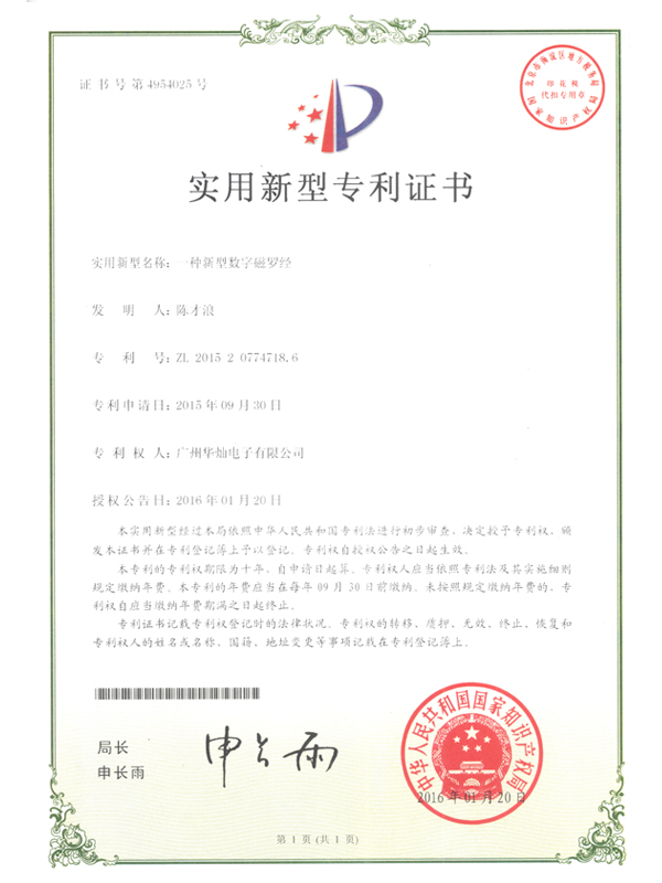 證書(shū)號(hào)4954025數(shù)字磁羅經(jīng)
